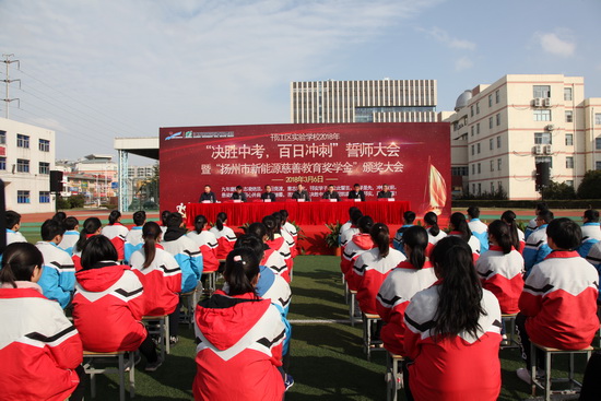 3月6日上午,由江苏新能源置业集团设立的新能源慈善教育奖学金;颁奖仪式在邗江区实验学校举行。市民政局、市慈善总会、邗江区政府、邗江区教育局等相关领导出席颁奖仪式?! ∈紫?,邗江区实验学校九年级全体同学进行奋战百日、超越自我、再创辉煌;决胜中考宣誓。接着,一批品学兼优的初三学生登台领取新能源慈善教育奖学金,有50名学生获得一等奖,每人奖...