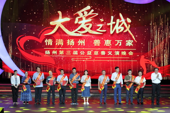 9月5日是我国第二个中华慈善日;。当晚,大爱之城;扬州第三届公益慈善义演晚会在市会议中心举行。中华慈善总会会长助理陈砚秋,省慈善总会会长蒋宏坤,市领导张爱军、朱民阳、张宝娟等出席晚会?! ⊥砘嵘习浞⒘耸捉煅镏荽壬平?,设有最具爱心慈善捐赠组织奖、最具感召力慈善工作者奖、最具爱心慈善捐赠个人奖、最具爱心慈善行为楷模奖、最具影响力慈善项目...