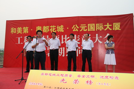 8月6日下午,和美第工地现场彩旗飘扬,人头簇拥,新能源集团和美第、奥都花城、公元国际大厦工程质量评比表彰大会隆重召开。新能源集团董事长包广林、新能源虎豹房屋开发有限责任公司总裁顾载兵等公司领导出席了表彰会。
