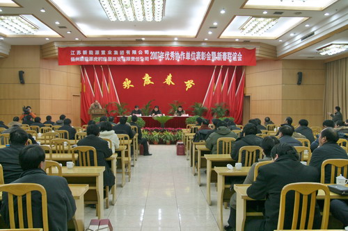2008年1月22日下午江苏新能源置业集团有限公司和扬州新能源虎豹房屋开发有限责任公司在琼都宾馆召开了2007年度优秀协作单位表彰大会暨新春联谊会?;嵘隙杂判阈鞯ノ唤辛吮碚貌浞⒘私苯鸷腿儆な椤?/p>