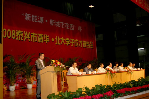 由江苏新能源置业集团独家赞助冠名、泰兴市团市委、市广电局联合举办的新能源新城市花园杯清华、北大优秀学子成才报告会于9月30日-10月1日在泰兴影视城举行,来自数所学校的两千多名学生、老师和家长参加聆听报告,泰兴市委常委、宣传部长戴仁泉和泰兴市副市长周桂香出席了报告会。