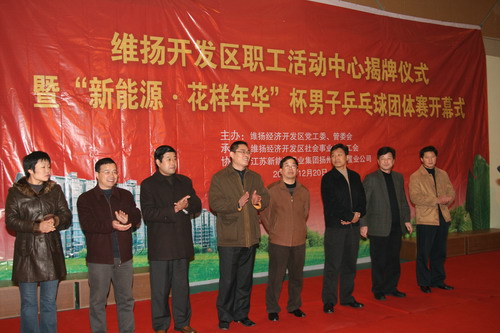 12月20日上午,刚刚落成的维扬开发区职工活动中心举行了隆重的揭牌仪式和新能源花样年华;杯男子乒乓球团体赛开幕式。
