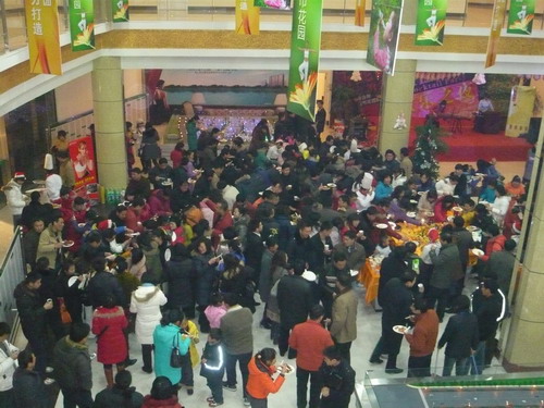12月23日,尽管是数九严寒滴水成冻的冬日,但在新能源新城市花园售楼中心大厅却呈现一派喜庆和春意。晚5时30分,兴高采烈的人们从四面八方涌向新能源。晚6时由新能源、风暴健身会所联办的2008放舞狂欢大型高档圣诞大餐酒会正在这里举行。