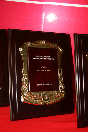 开幕式上市房产管理局党组书记、局长杨学华先生介绍了房交会的筹备情况并宣读了2008年度扬州市区商品住宅销售十强项目;的企业名单,与会嘉宾现场为十强;项目进行了授牌。