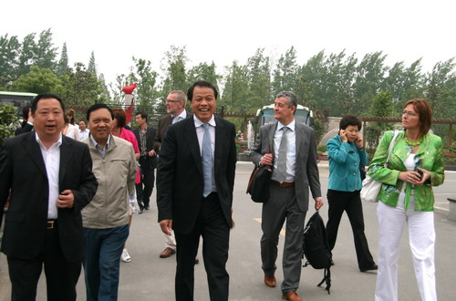 2010年5月16日下午,来自比利时王国林堡省省长哈曼任德斯、布瑞市市长雅克嘉布里埃尔一行的30多名友人在参加完世博会比利时馆开馆仪式以后,即来到了风景秀丽令西方人为之魂牵梦萦的东方古城 扬州。他们在游览了古城的景点后,在董事长包广林热情地陪同下,参观了阳光美第和豪第坊。客人们在听了销售人员对楼盘的介绍后,对我公司在楼盘建设中引入低碳、环保的理念表示非常赞许。随行的建筑师安德鲁斯帕斯先生说,这样的理念在我们欧洲也是先进的。安德鲁斯帕斯先生还对具有东方神韵的豪第坊大加赞赏,他说在这里让我穿越时空看到了我梦中的扬州。