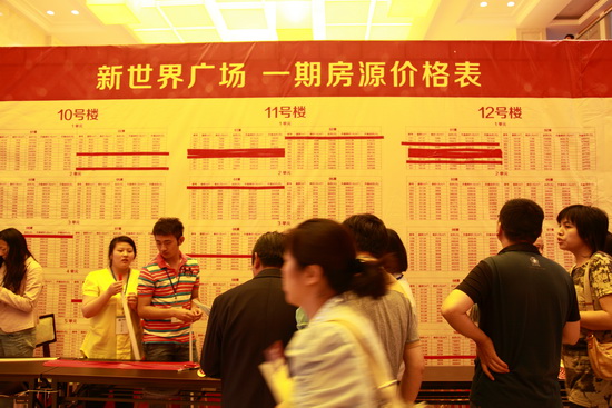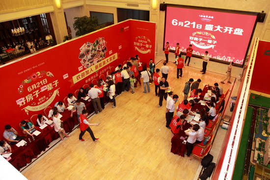 6月21日是新能源新世界广场首期8幢小高层开盘的日子,一大早,泰兴市民就从四面赶来,将临时搭建的拥有2000个座位的摇号大棚坐得满满,市民凭摇出的号码进入销售大厅选房购房。据统计,开盘3小时就劲销300余套。