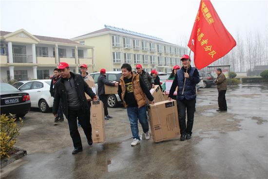 是日上午10时,天空小雨霏霏,豪第坊的员工和业主手持志愿者分队队旗,携带10台油汀取暖器和面包等生活用品,来到仪征市新集镇敬老院,看望住在这里的70多位孤寡老人。他们和老人们亲切攀谈,参观了解敬老院的生活设施,向老人们祝贺新年。一位业主告诉记者:这是我们响应号召,和豪第坊员工一道,主动捐款购买生活用品看望老人,作为新能源人;,心里感到很温暖。