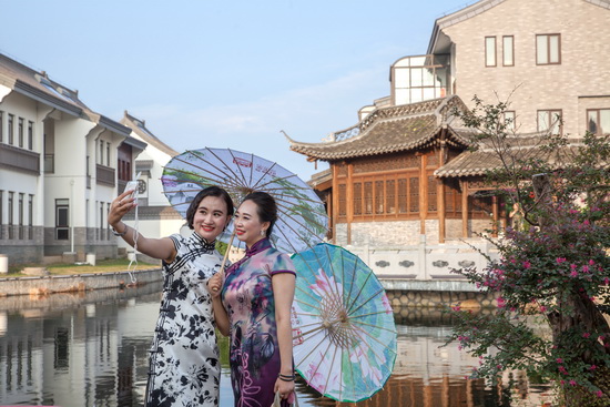 有着骨子里的扬州;美誉,由江苏新能源置业集团打造的豪第坊,成为本次盛会举办地的不二之??!这座占地480亩的小区,将扬州文化、苏式园林及徽派建筑的特点融为一体,以木结构独栋别墅和大庭院闻名,在扬州高档别墅区中独树一帜。小区规模宏大,五横三纵长达3公里的水系布满整个小区、水面上横卧以扬州二十四桥;为蓝本的24座形态材质各异的大小桥梁,绿意森森、繁花处处、水流蜿蜒、情趣盎然,宛如世外桃源。千百位身着旗袍、风姿各异的美女徜徉在这园林胜境之中,是怎样的一幅动人美景!
