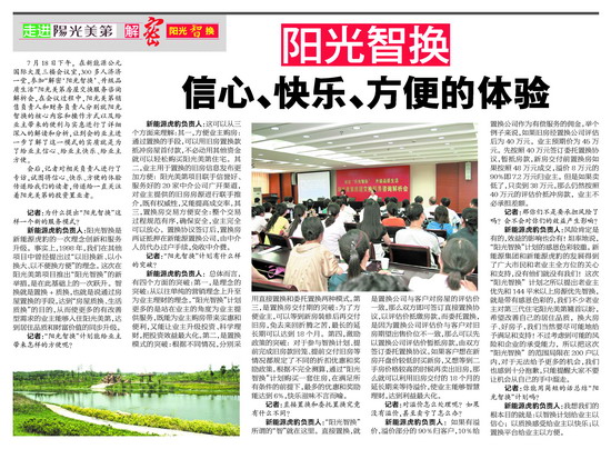 记者:为什么提出阳光智换;这样一个新的服务模式?